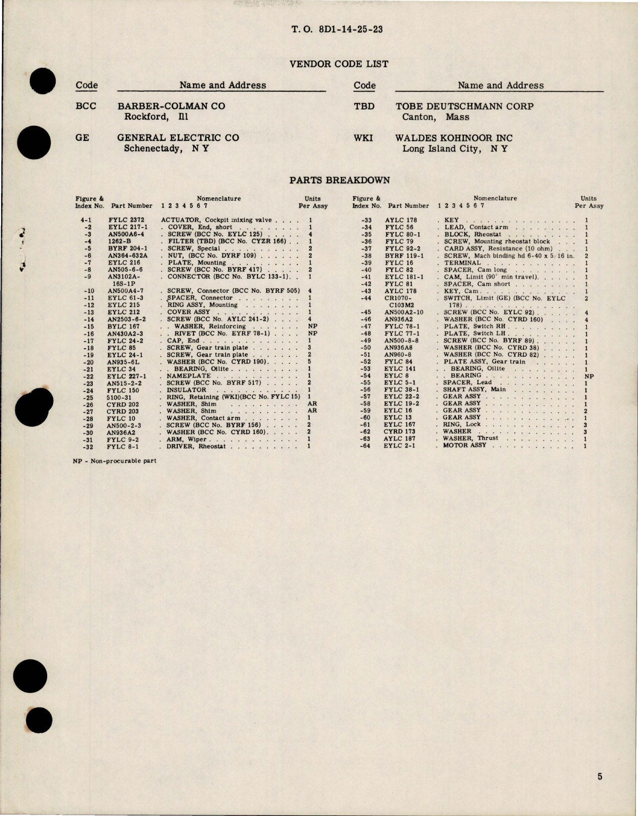 Overhaul Instructions with Parts Breakdown for Mixing Valve Actuator - Model FYLC 2372 , T.O. No. 8D1-14-25-23, 15-Oct-1955