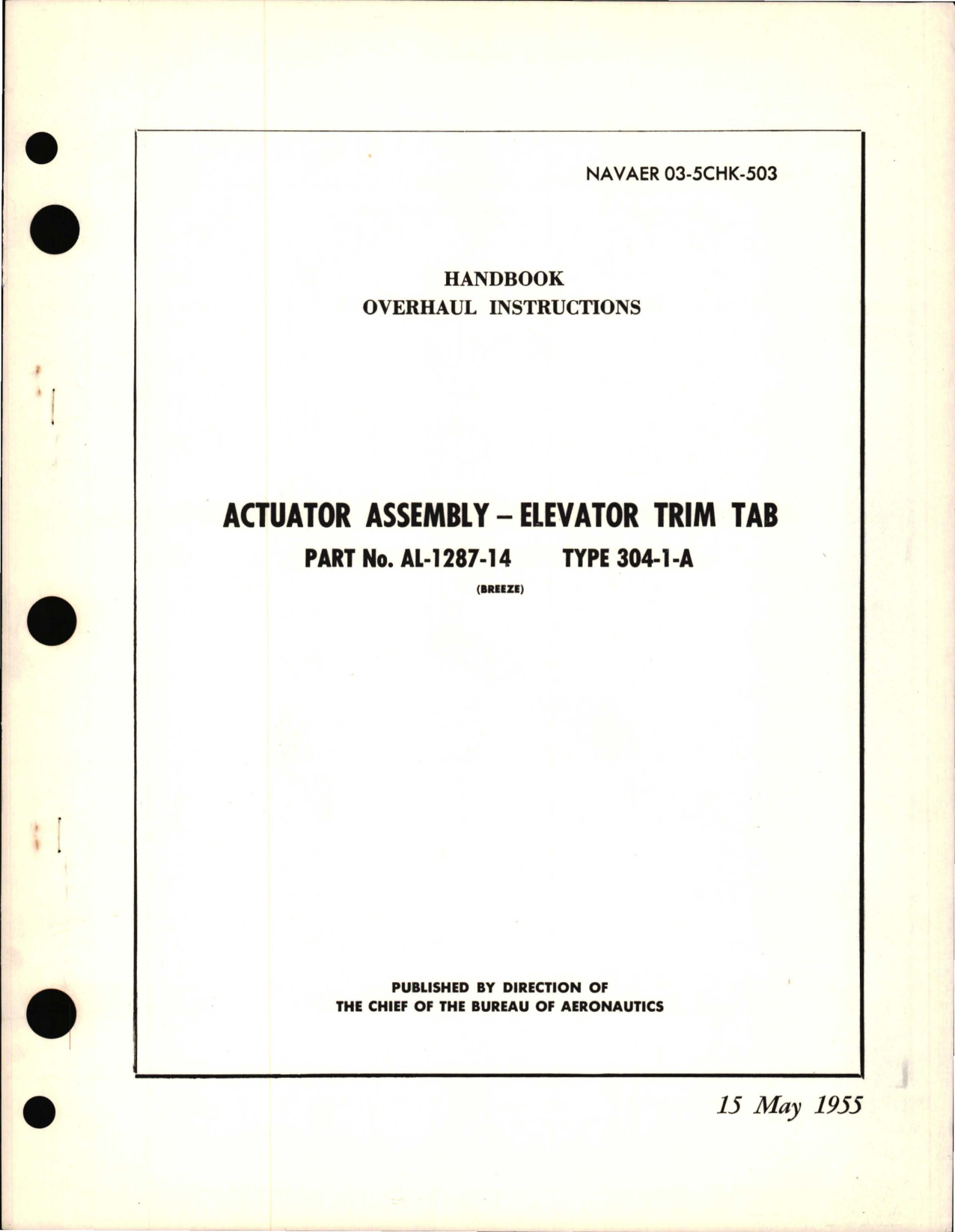 Overhaul Instructions for Actuator Assy - Elevator Trim Tab Part No. AL-1287-14, Type 304-1-A, NAVAER 03-5CHK-503, 15-May-1955