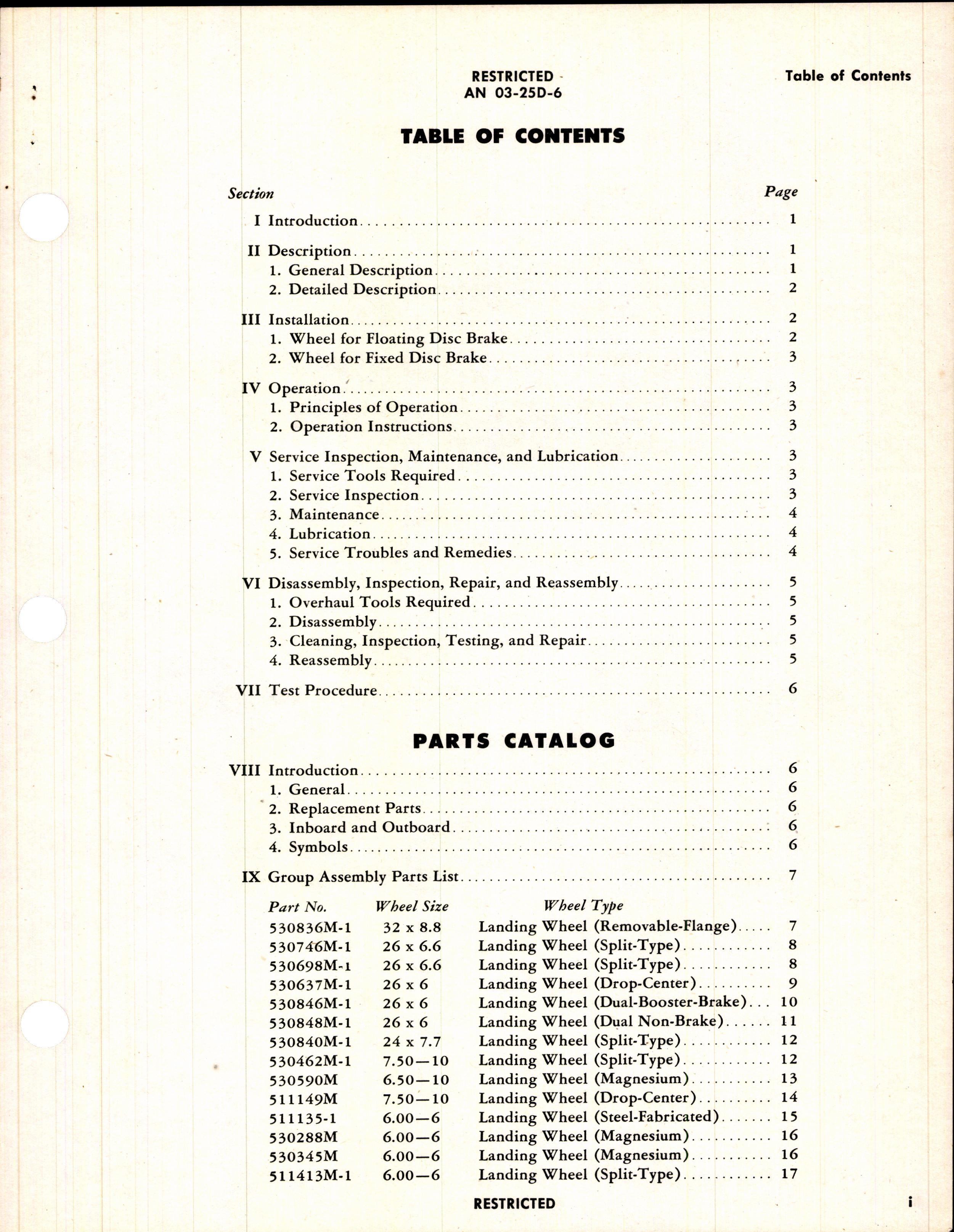 Handbook of Instructions with Parts Catalog for Landing Wheels For Use With Single Disc Brakes, AN 03-25D-6, 1-June-1945