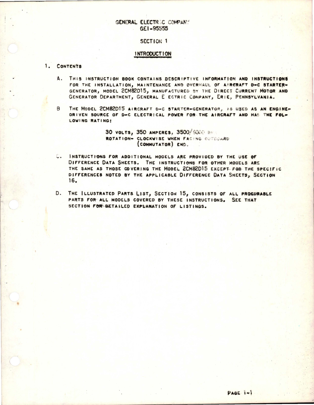 Instructions for DC Starter Generator - Models 2CM82D15 and 2CM82F3 , GEI-95555, 15-Mar-1967