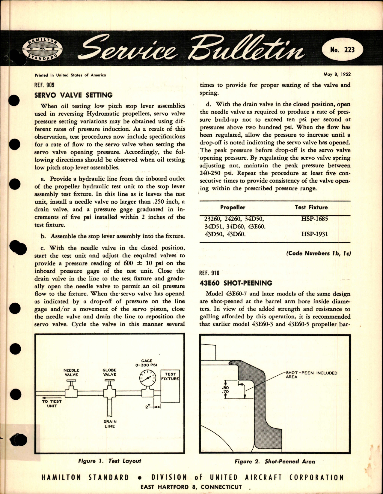 Servo Valve Setting, Ref 909, No. 223, 8-May-1952