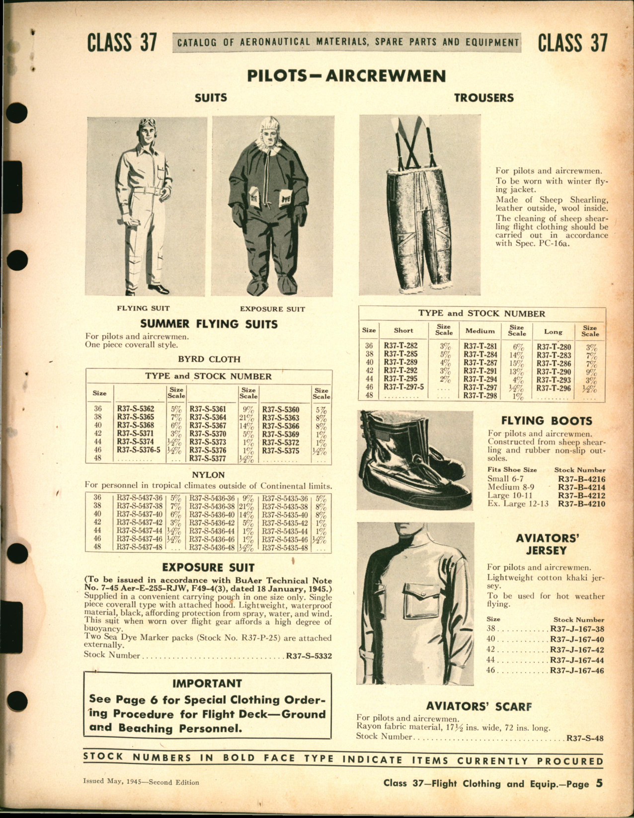 Pilots' and Aircrewmen's Flight Clothing and Related Accessories, Section 3701, Second Edition, May-1945