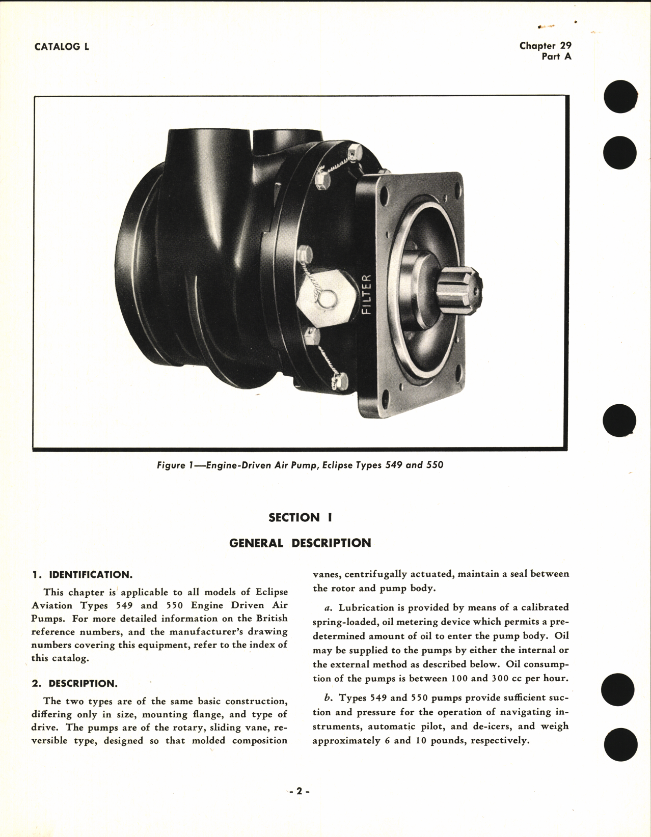 Operating and Service Instructions for Eclipse Aviation Engine-Driven Air Pumps Types 549 and 550, Catalog L Chapter 29 Part A, Apr-1944