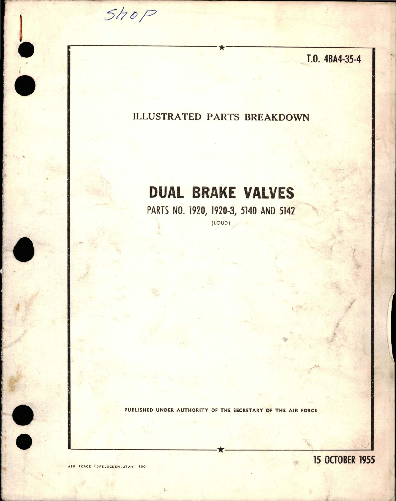 Illustrated Parts Breakdown for Dual Brake Valves - Parts 1920, 1920-3, 5140, and 5142 , T.O. No. 4BA4-35-4, 15-Oct-1955