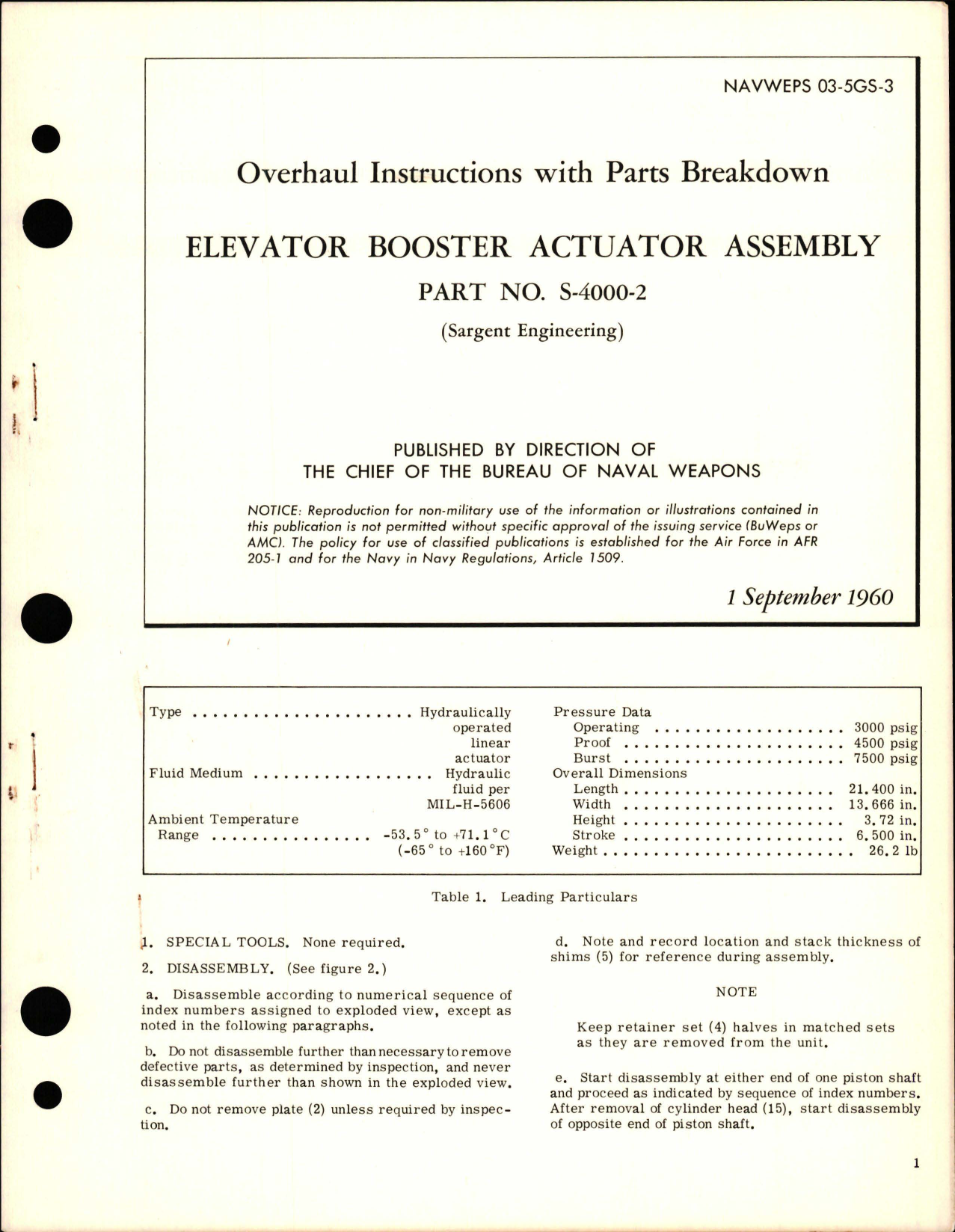 Overhaul Instructions with Parts Breakdown for Elevator Booster Actuator Assembly - Part S-4000-2, NAVWEPS 03-5GS-3, 1-Sept-1960