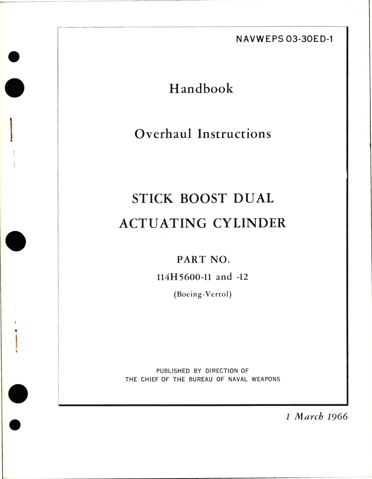Overhaul Instructions for Stick Boost Dual Actuating Cylinder - Part 114H5600-11 and 114H5600-12, NAVWEPS 03-30ED-1, 1-Mar-1966