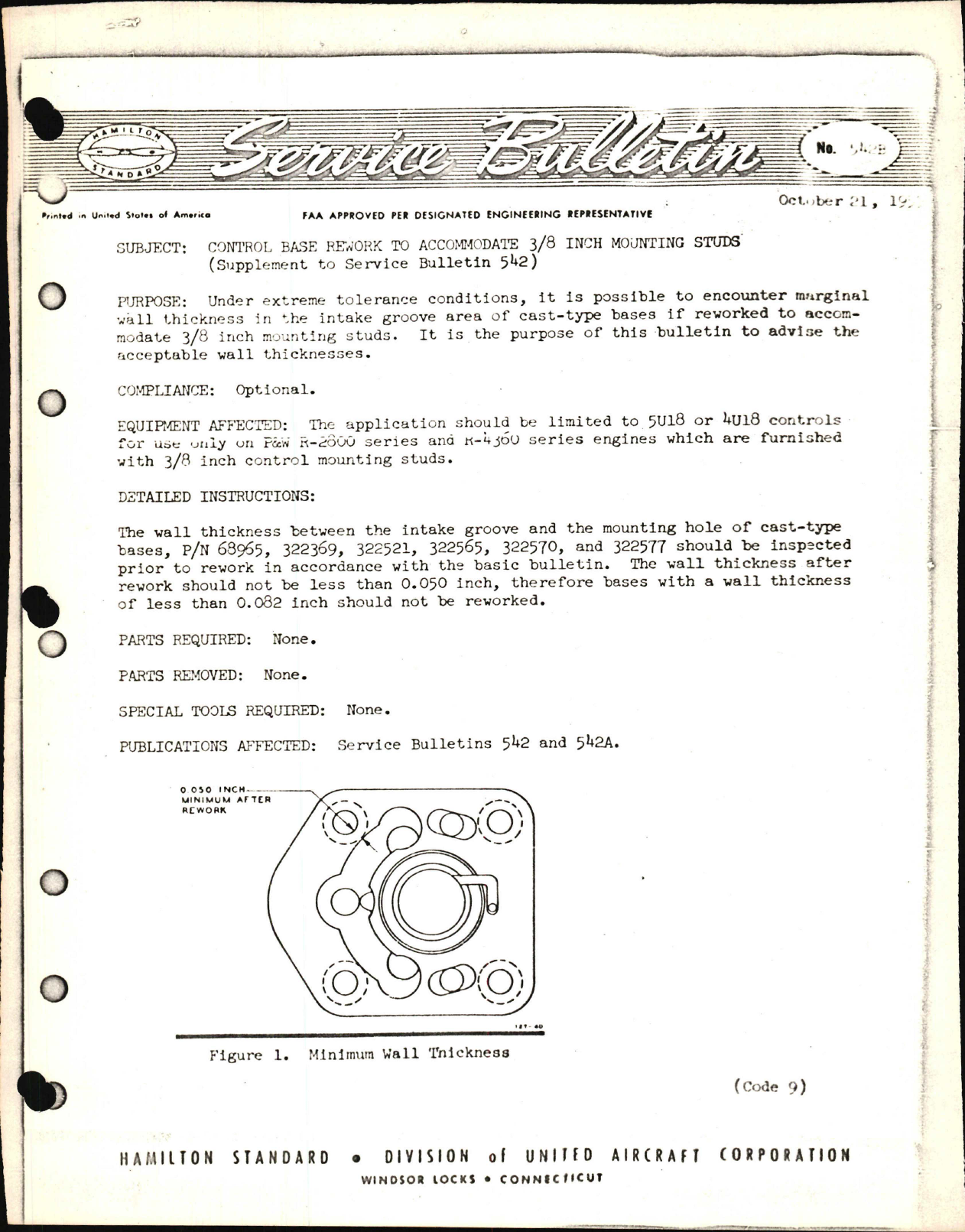 Control Base Rework to Accommodate 3/8 Inch Governor Mounting Studs, No. 542B, 21-Oct-1959