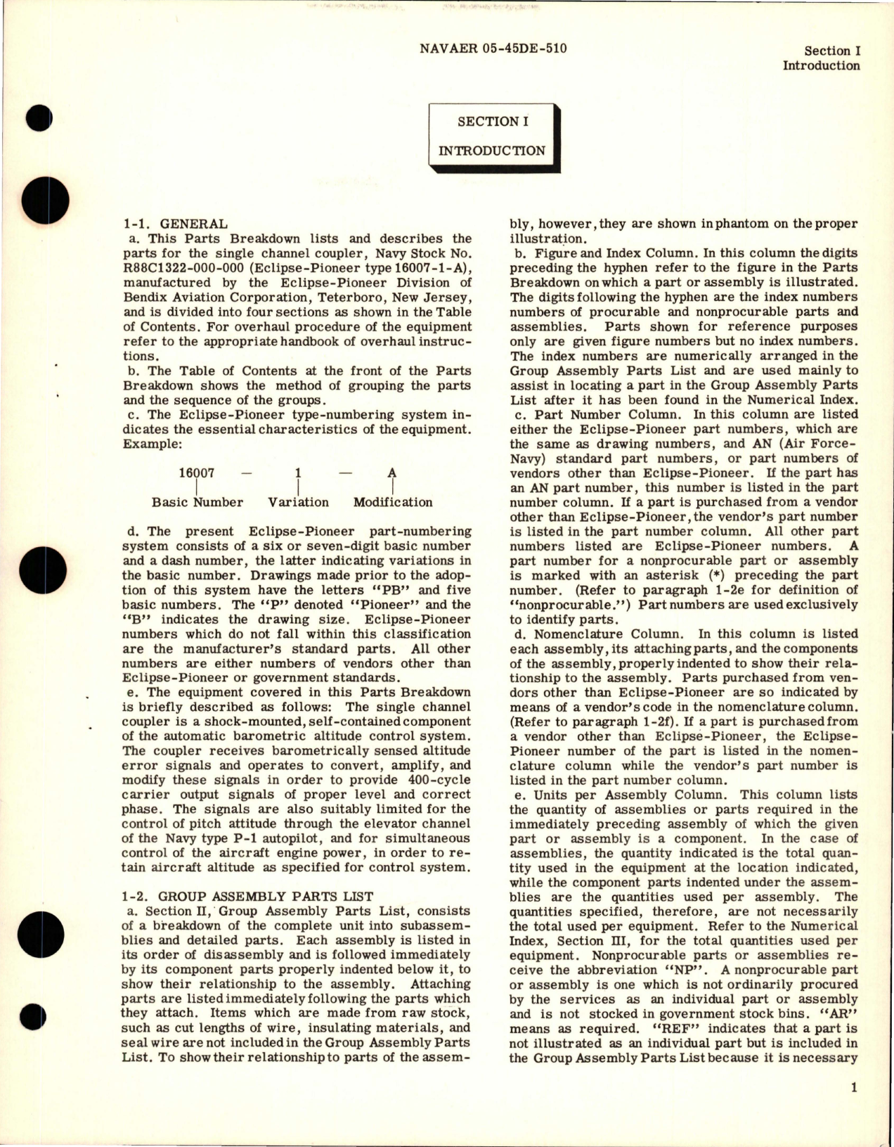 Illustrated Parts Breakdown for Single Channel Coupler - Part 16007-1-A, NAVAER 05-45DE-510, 15-Oct-1954