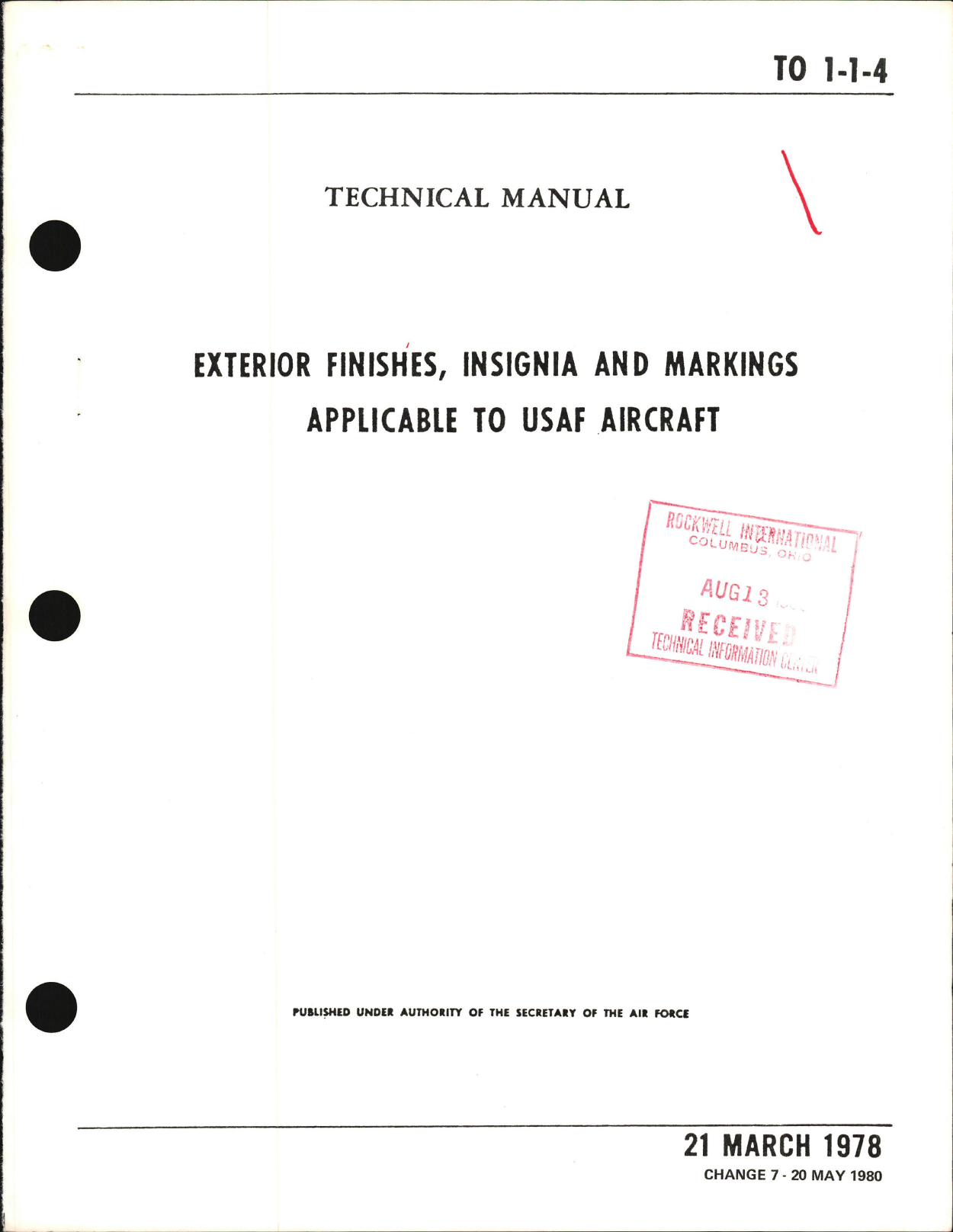 Exterior Finishes, Insignia and Markings for USAF Aircraft - Change -7, T.O. No. 1-1-4, 20-May-1980