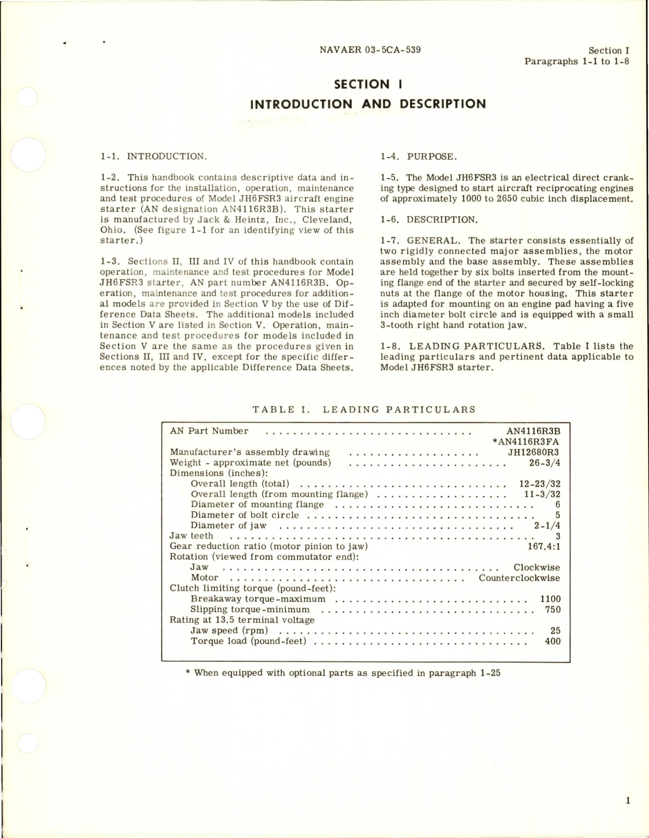 Operation and Service Instructions for Aircraft Engine Starter - Model JH 6 Series, NAVWEPS 03-5CA-539, 1-Oct-1958