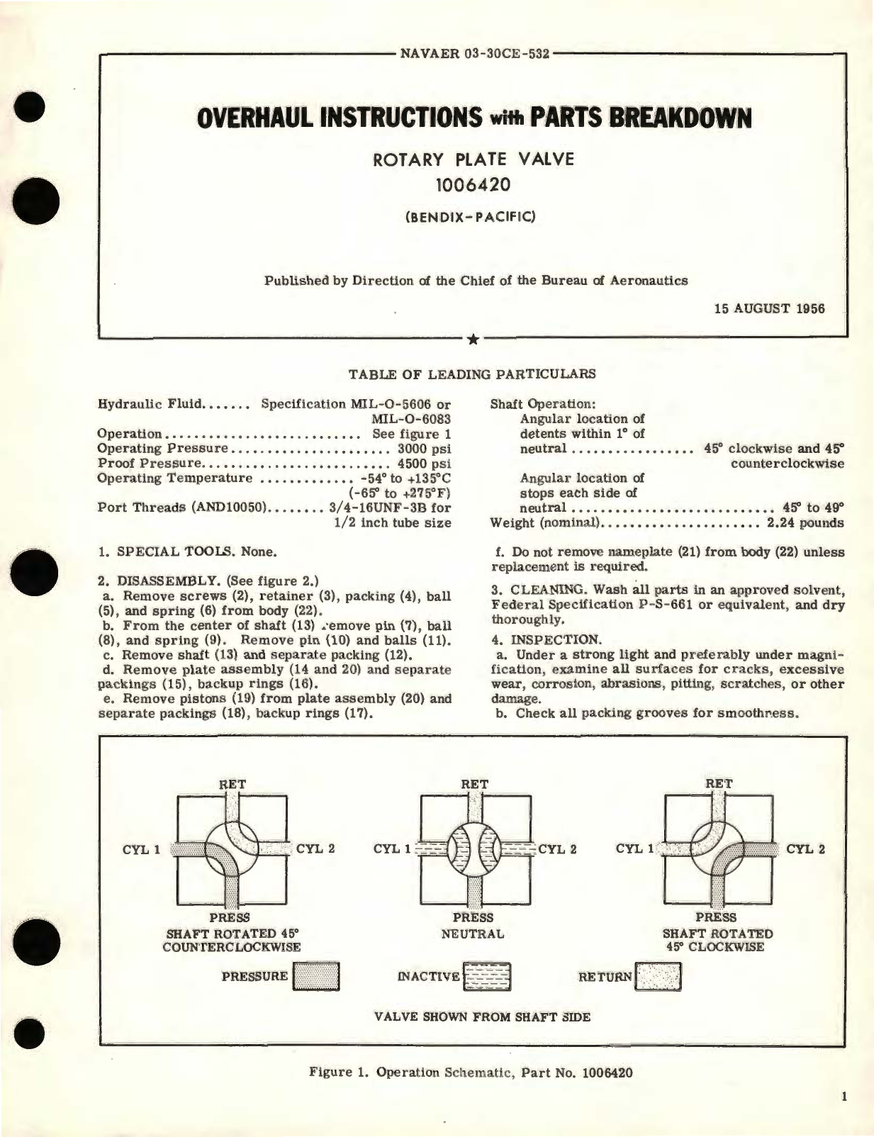 Overhaul Instructions with Parts Breakdown for Rotary Plate Valve 1006420 , NAVAER 003-30CE-532, 15-August-1956
