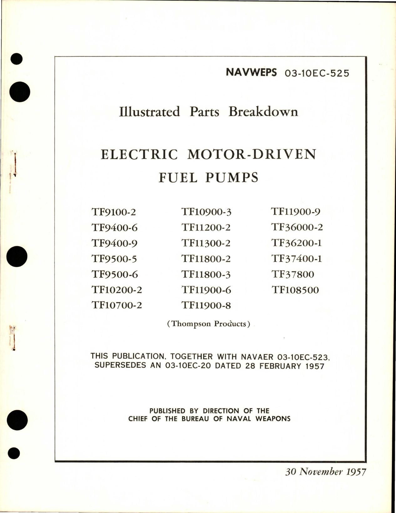 Illustrated Parts Breakdown for Electric Motor Driven Fuel Pumps, NAVWEPS 03-10EC-525, 30-Nov-1957