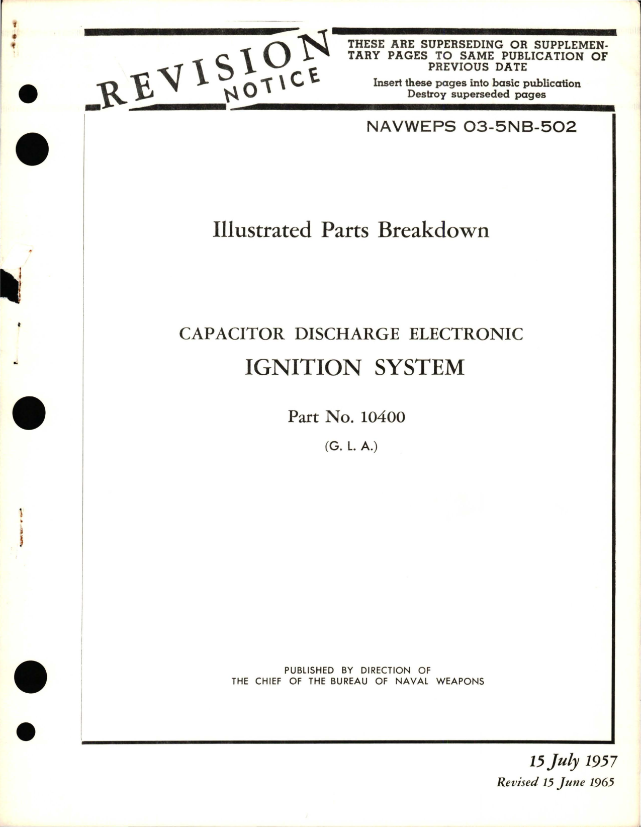 Illustrated Parts Breakdown for Capacitor Discharge Electronic Ignition System - No 10400 , NAVWEPS 03-5NB-502, 15-June-1965