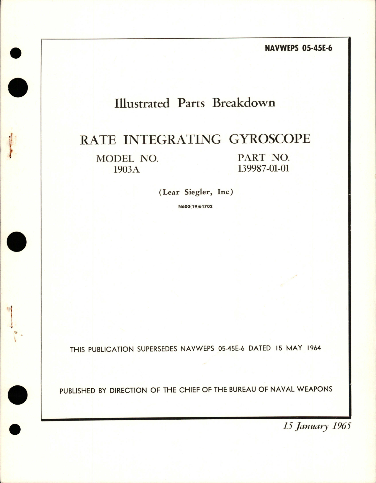 Illustrated Parts Breakdown for Rate Integrating Gyroscope - Model 1903A, NAVWEPS 05-45E-6, 15-Jan-1965